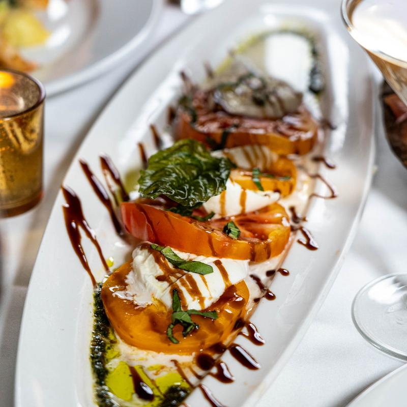• Buffalo Mozzarella, Heirloom Tomatoes, Basil Pesto, Truffled Sea Salt, 12yr. Aged Balsamic
